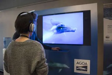 Cabine acoustique proposant une immersion sonore dans les fonds marins du sanctuaire Agoa (Julie Gourvès, OFB)