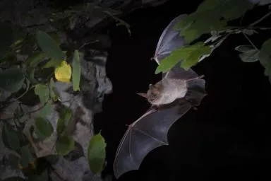 Grand murin (Myotis myotis) en vol à la fin de l'été, période du rut (Philippe Massit)