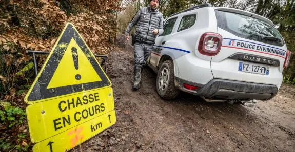 Agent de l'OFB sur un contrôle de chasse - Crédit photo : Lionel Vadam / Est Républicain
