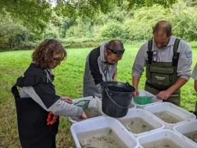 Pêche de suivi sur la Bérence, à Gavray (Manche) le 7/09/2020 (Nathalie Pfeiffer / OFB)