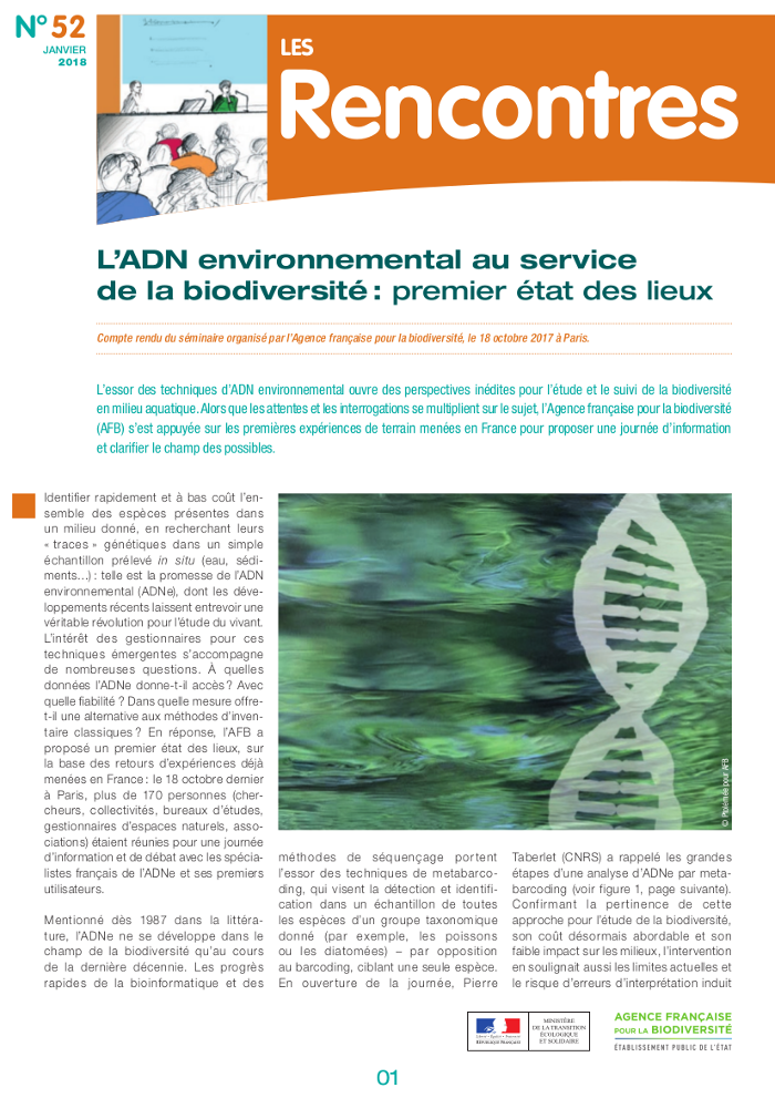 L'ADN environnemental au service de la biodiversité : premier état des lieux - n°52