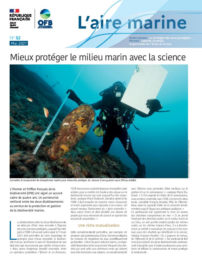 L'Aire marine est la lettre d'information de l'OFB consacrée à la mer, publiée dans le journal Le Marin. Le numéro 52 est désormais disponible.