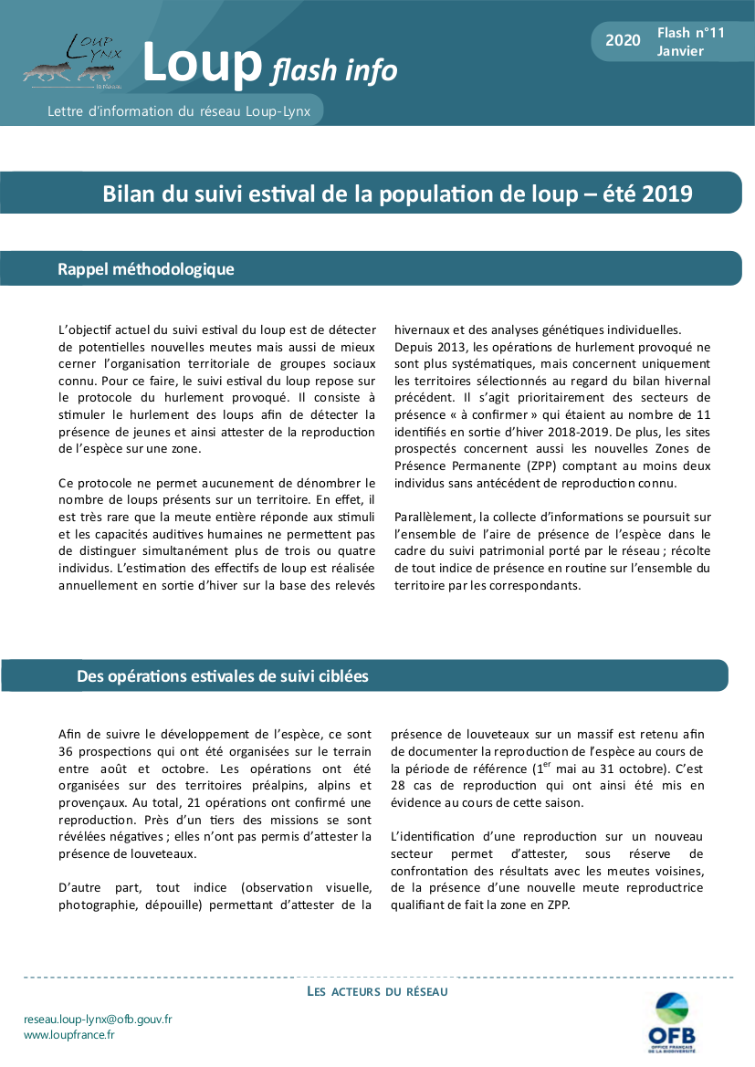 Bilan suivi estival loup 2019 - Loup flash info n°11 2020
