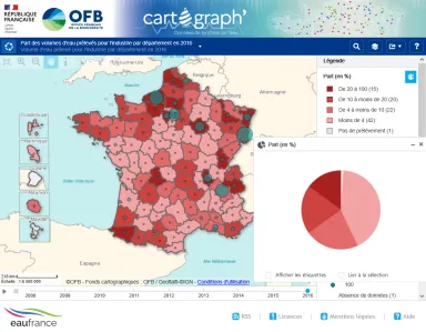Outil de visualisation en ligne des données sur l’eau en France, CartOgraph’ est désormais plus ergonomique et interactif. Son interface facile d'utilisation permet de consulter et exploiter les données de synthèse sur l’eau douce, les milieux aquatiques et leurs usages, sous forme de cartes, d’animations ou de graphiques. Rendez-vous sur cartograph.eaufrance.fr.