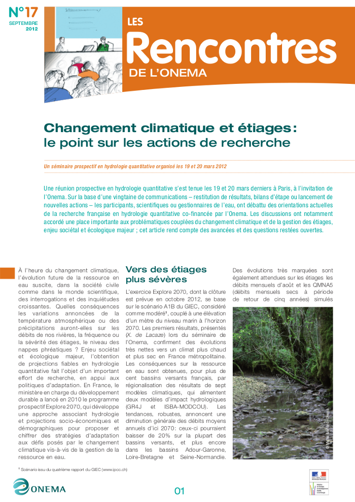 Un séminaire prospectif organisé par l'Onema, les 19 et 20 mars 2012 à Paris.