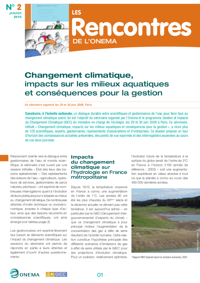 Un séminaire organisé les 29 et 30 juin 2009, à Paris, par l'Onema et le programme Gestion et Impacts du Changement Climatique (GICC) du ministère en charge de l'écologie.