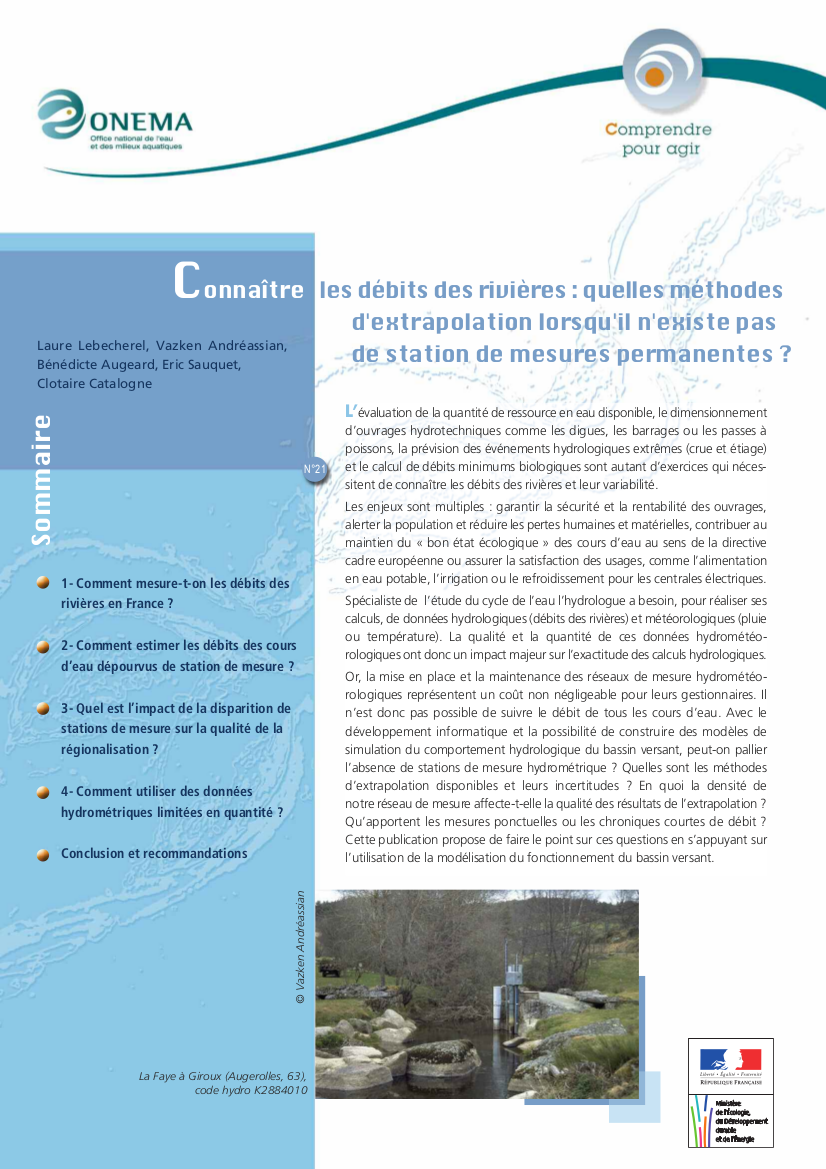 La connaissance de la variabilité des débits des rivières est essentielle dans nombre d’activités liées à la gestion de l’eau : évaluation de la quantité de ressource en eau disponible, dimensionnement d’ouvrages hydrotechniques comme les digues, les barrages ou les passes à poissons, prévision des événements hydrologiques extrêmes (crue et étiage) ou encore calcul de débits minimums biologiques. Or, les mesures effectuées au niveau des stations hydrologiques ne permettent pas de couvrir l’ensemble du linéaire de cours d’eau...