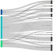 A travers une série de représentations graphiques, cette datavisualisation permet d’apprécier la nature des obstacles recensés et de mieux connaître, par exemple, les usages qui leur sont associés avec systématiquement les nombres d’ouvrages concernés.