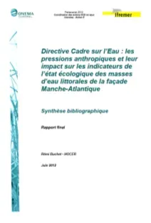 Directive Cadre sur l’Eau : les pressions anthropiques et leur impact sur les indicateurs de l’état écologique des masses d’eau littorales de la façade Manche-Atlantique. Synthèse bibliographique
