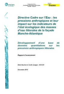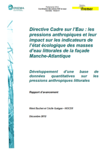 Ce document compile 3 des livrables 2012 d’une étude pluri-annelle destinée à caractériser la sensibilité de ces indicateurs biologiques vis-à-vis des différentes pressions anthropiques s’exerçant sur le littoral Manche-Atlantique : l’objectif in fine est d’établir une relation quantitative et prédictive, statistiquement robuste, entre les indicateurs DCE utilisés sur la façade Manche-Atlantique française, et les différentes pressions anthropiques s’exerçant sur cette portion du littoral.