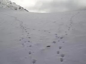 Empreintes de loups dans la neige formant plusieurs pistes dans la région naturelle de Beaumont en 2016 (Pierre-Emmanuel Briaudet, OFB)