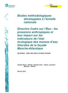 Ce document fait le bilan des 2 années de l’étude pluriannuelle destinée à caractériser la sensibilité de ces indicateurs biologiques vis-à-vis des différentes pressions anthropiques s’exerçant sur le littoral Manche-Atlantique dont l’objectif in fine était d’établir une relation quantitative et prédictive, statistiquement robuste, entre les indicateurs DCE utilisés sur la façade Manche-Atlantique française et les différentes pressions anthropiques s’exerçant sur cette portion du littoral.