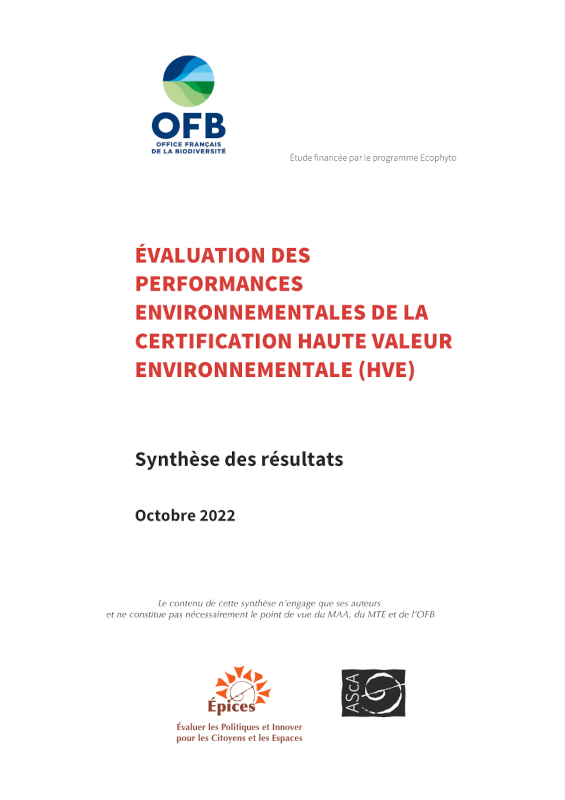 Pour objectiver cette question et alimenter la réflexion collective, une mission d’évaluation de la performance environnementale de la certification HVE commanditée par les ministères de l’Agriculture et de la souveraineté alimentaire (MASA) et de la Transition écologique et de la cohésion des territoires (MTECT) et pilotée par l’Office français de la biodiversité (OFB) a été confiée en 2021 aux bureaux d’études Epices et AScA. Cette mission a pu analyser en détail le fonctionnement de cette certification et clarifier son niveau d’exigence environnementale au sein des différentes filières agricoles.