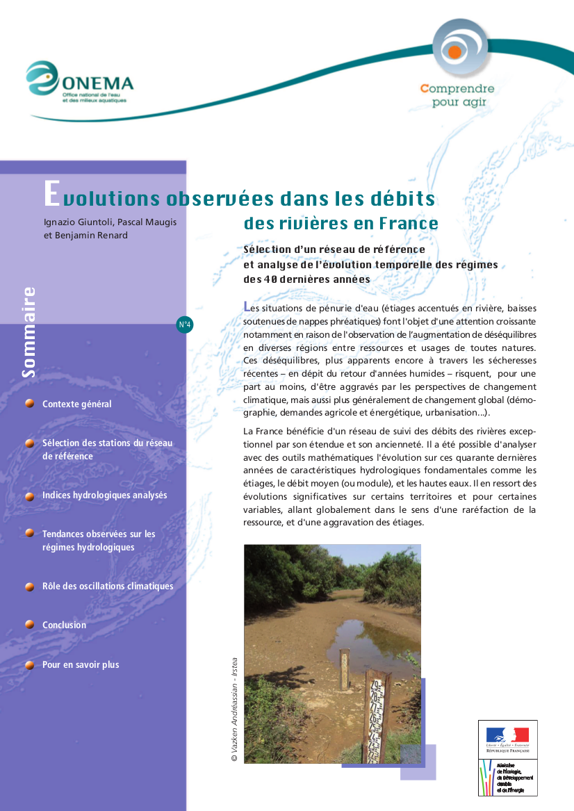 La France bénéficie d'un réseau de suivi des débits des rivières exceptionnel par son étendue et son ancienneté. Il a été possible d'analyser avec des outils mathématiques l'évolution sur ces quarante dernières années de caractéristiques hydrologiques fondamentales comme les étiages, le débit moyen (ou module), et les hautes eaux.