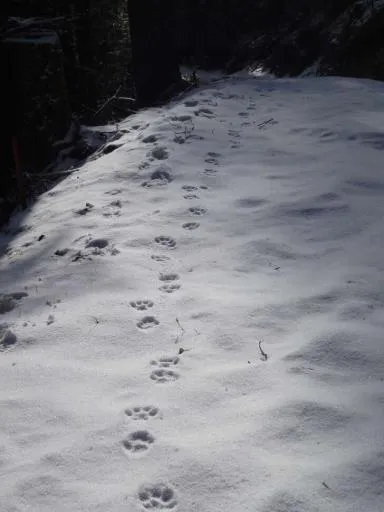 Traces de Lynx boréal formant une piste dans la neige (Pierre-Emmanuel Briaudet, OFB)