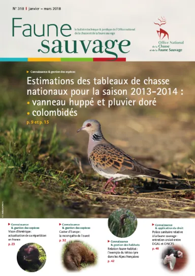 318 - Estimations tableaux de chasse nationaux saison 2013-2014 : vanneau huppé / pluvier doré, colombidés