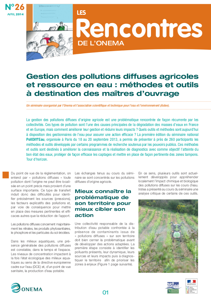 La 1re édition du séminaire national PollDiff'Eau, organisée à Paris du 18 au 20 septembre 2013, a permis de présenter aux 260 participants les méthodes et outils développés dans le cadre de programmes de recherche soutenus par les pouvoirs publics et visant 3 buts précis :