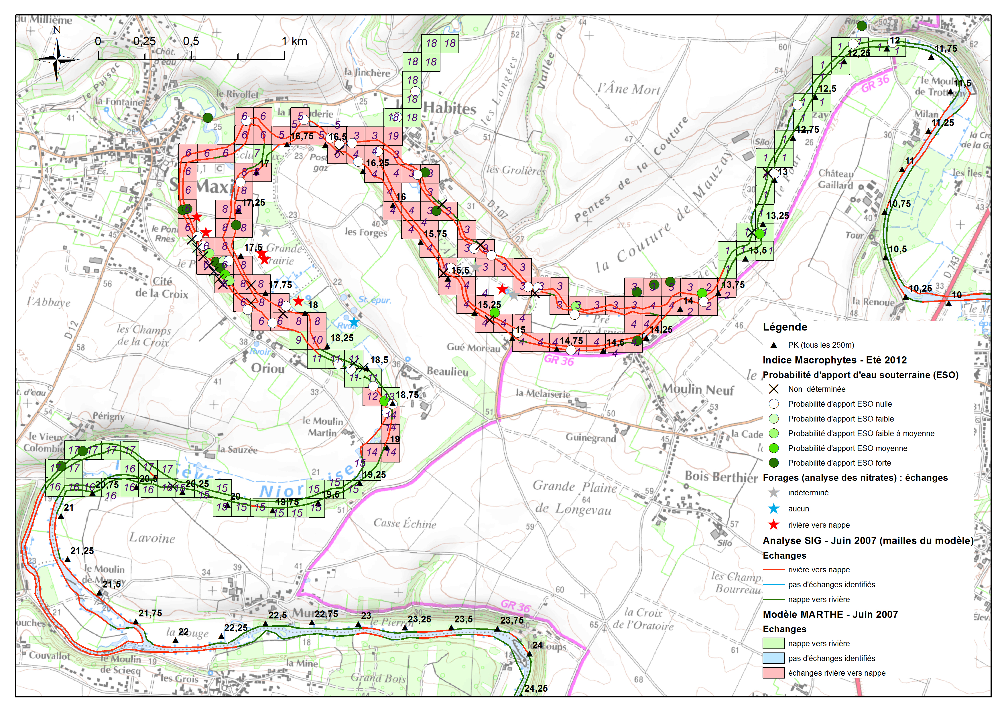 Fiche outils n°8 - Autres méthodes, autres modèles donne un aperçu rapide d’autres méthodes pouvant être utilisées pour caractériser les échanges nappe/rivière (par ex. méthodes géophysiques, fibre optique, autres types de modèles, analyse du signal, jaugeages différentiels, traçages, reconnaissance physique de terrain...).