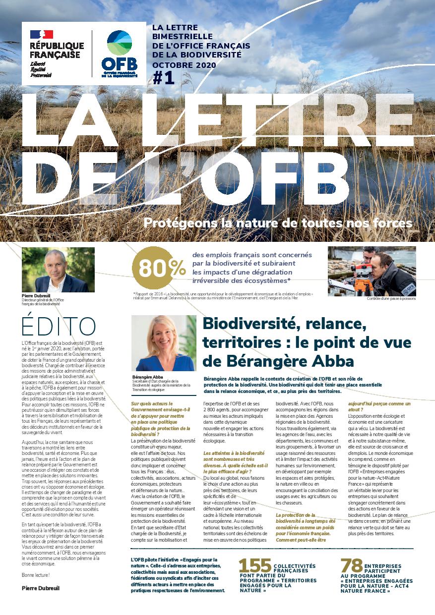 La lettre de l'OFB est la lettre d’information bimestrielle de l’Office français de la biodiversité. Elle met en avant les missions et les actions de l’établissement et de ses partenaires.