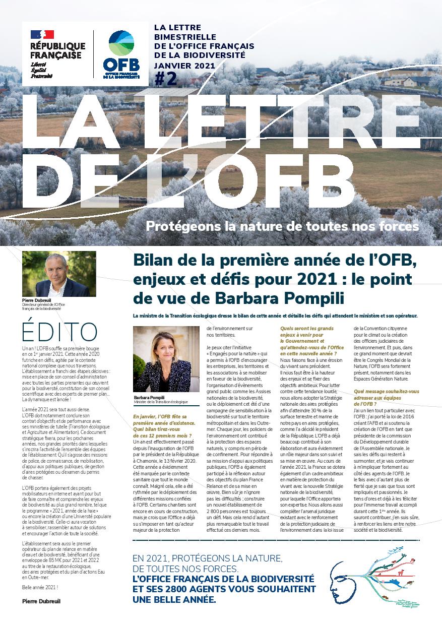 La lettre de l'OFB est la lettre d’information bimestrielle de l’Office français de la biodiversité. Elle met en avant les missions et les actions de l’établissement et de ses partenaires.