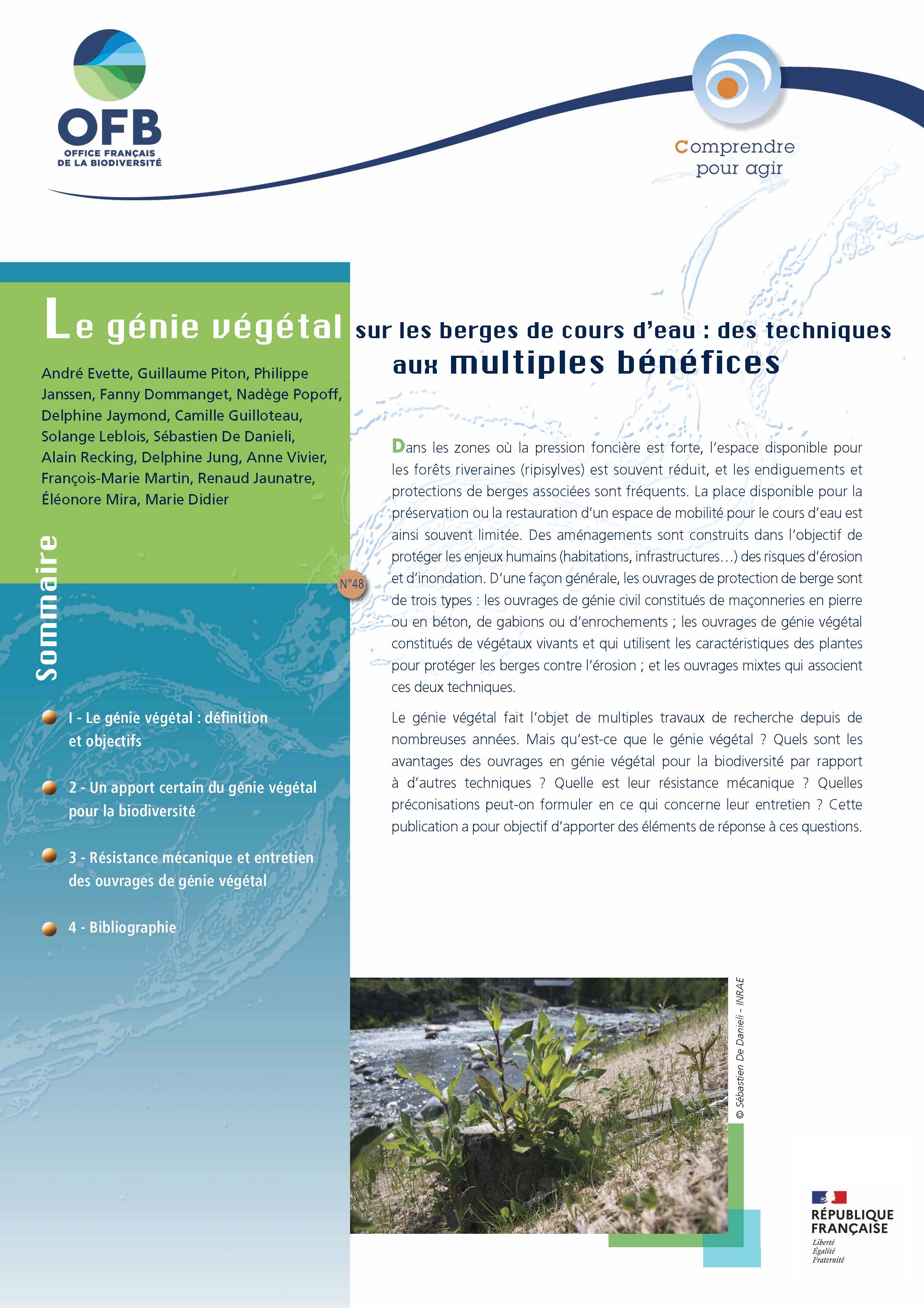 Evette A. et al., 2022. Le génie végétal sur les berges de cours d’eau : des techniques aux multiples bénéfices. Office français de la biodiversité. Collection Comprendre pour agir. 28 pages.