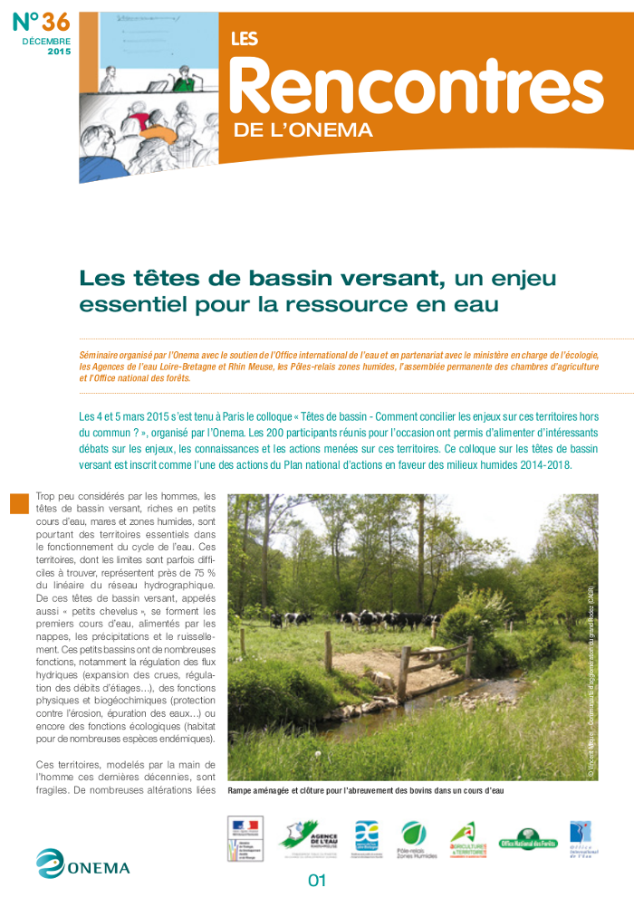 Alimenter les débats sur les enjeux, les connaissances et les actions menées sur les têtes de bassins versants, tel était le but du colloque "Têtes de bassin - Comment concilier les enjeux sur ces territoires hors du commun ?" de 2015. Un colloque inscrit comme l'une des actions du Plan national d'actions en faveur des milieux humides 2014-2018.