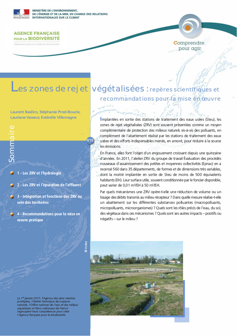 Présentées comme un moyen complémentaire des stations de traitement des eaux usées (Steu) pour protéger les milieux naturels vis-à-vis des polluants, les zones de rejet végétalisées (ZRV) font l'objet d'un engouement croissant depuis une quinzaine d'années, en France. Cette publication propose un état des lieux des connaissances scientifiques et techniques sur les principales fonctions qui leur sont attribuées, dont la réduction des débits sortants et l'élimination des polluants. Elle fournit aussi des recommandations consensuelles de conception et d'entretien, visant à optimiser l'efficacité des futures ZRV.