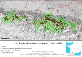 En 2024, un minimum de 96 ours bruns a été détecté sur l’ensemble du massif des Pyrénées, dont 13 portées totalisant 22 oursons de l’année. Ces résultats sont présentés dans le rapport annuel 2024 du suivi de l'espèce dans les Pyrénées françaises, réalisé par le réseau Ours brun de l'Office français de la biodiversité (OFB).