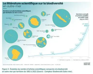 Fig 4. Evolution nombre articles scientifiques (Rencontres 91, 2024, Biodiversité et Outre-mer, OFB)