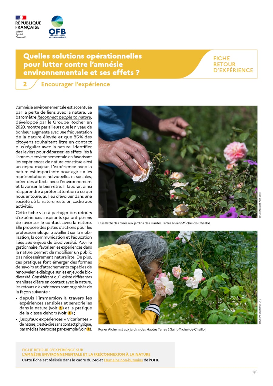 "L’amnésie environnementale est accentuée par la perte de liens avec la nature. [...] les retours d’expériences sont organisés de la façon suivante : depuis l’immersion à travers les expériences sensibles et sensorielles dans la nature et la pratique de la classe dehors ; jusqu’aux expériences « vicariantes » de nature, c’est-à-dire sans contact physique, par médias interposés par exemple." (extrait)
