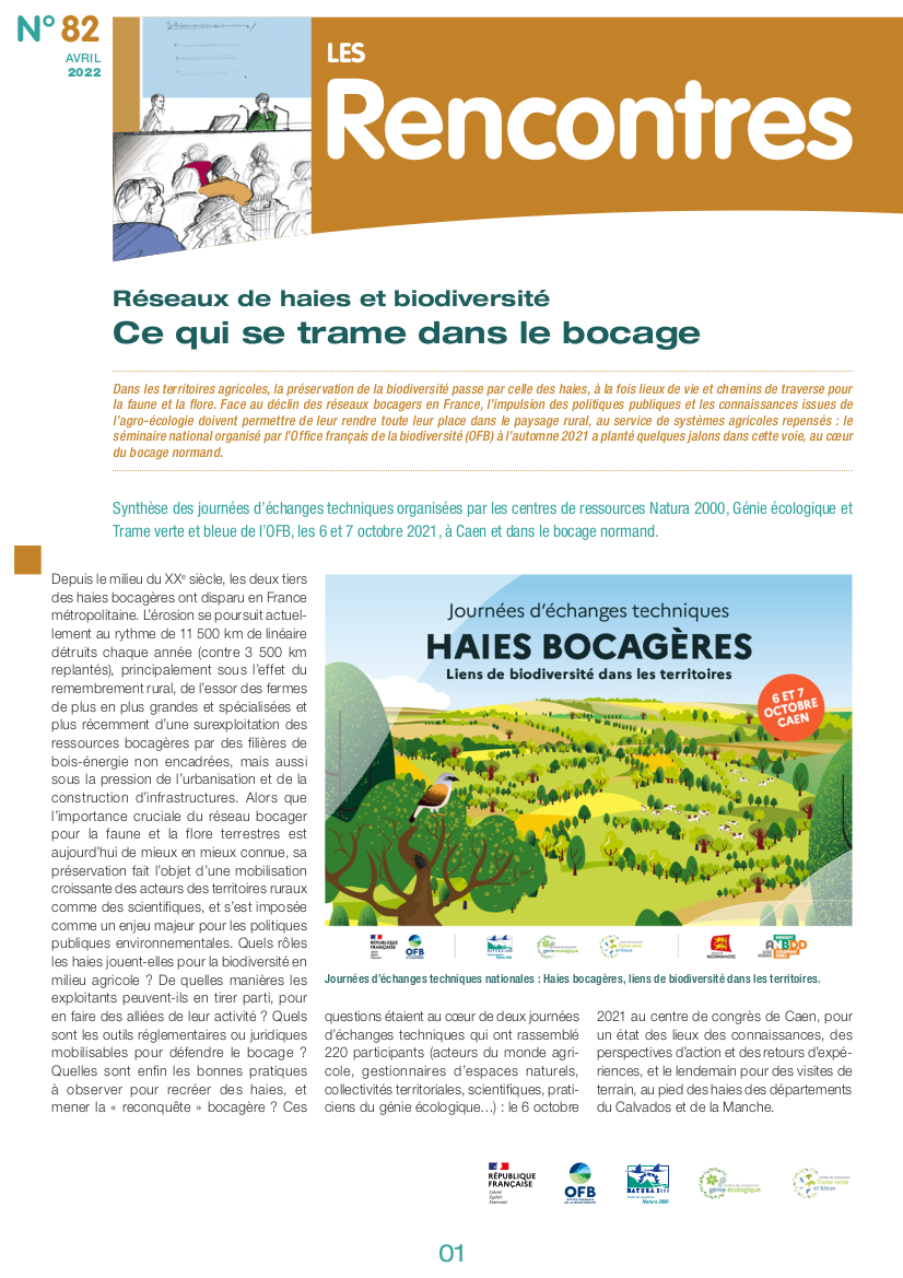 Synthèse des journées d’échanges techniques organisées par les centres de ressources Natura 2000, Génie écologique et Trame verte et bleue de l’OFB, les 6 et 7 octobre 2021, à Caen et dans le bocage normand.