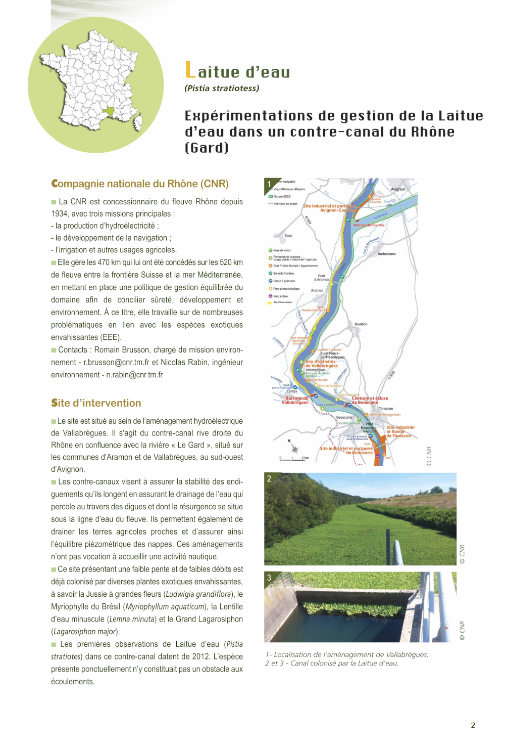 Un retour d'expérience de gestion est disponible sur la gestion de la Laitue d'eau, précisant les enjeux, interventions, mise en œuvre, résultats et bilan, ainsi que les perspectives et des éléments de réglementation.