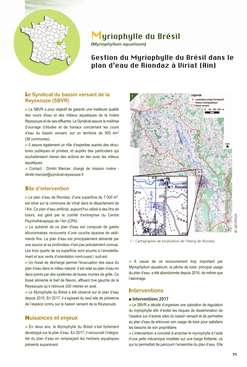 Gestion du Myriophylle du Brésil dans le plan d’eau de Riondaz à Viriat (Ain) /CPA2022_EEE-v42015