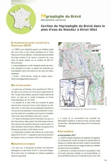 Des retours d'expérience de gestion sont disponibles sur l'éradication ou gestion des myriophylles du Brésil, précisant les enjeux, interventions, mise en oeuvre, résultats et bilan, ainsi que les perspectives et des éléments de réglementation.