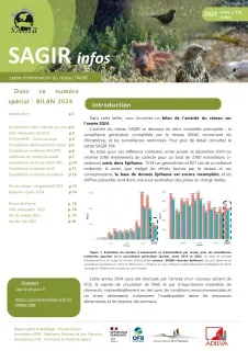 Dans cette lettre, vous trouverez un bilan de l'activité du réseau sur l’année 2024 à travers des indicateurs de fonctionnement généralistes et des bilans détaillés de chaque surveillance renforcée. Au total, 2 366 évènements de collecte ont été recensés, pour 2760 échantillons (cadavres) saisis dans Epifaune, 1539 cas généralistes et 827 cas de surveillance renforcée.