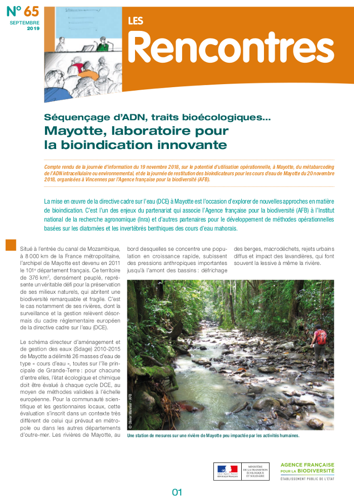 Compte-rendu de la journée d’information du 19 novembre 2018 sur le potentiel d’utilisation opérationnelle, à Mayotte, du metabarcoding de l’ADN intracellulaire ou environnemental, et de la journée de restitution des bioindicateurs pour les cours d’eau de Mayotte du 20 novembre 2018, organisées à Vincennes par l’Agence française pour la biodiversité.