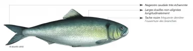 Schéma morphologique de la Grande Alose (Bluelife/OFB)