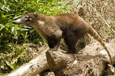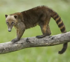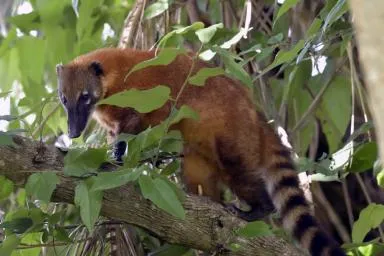 Le Coati roux est un mammifère carnivore, de la famille des ratons laveurs mais à la silhouette plus fine et élancée, terminant par une longue queue annelée. Protégé en Guyane, c'est une espèce exotique envahissante à surveiller en Europe occidentale.