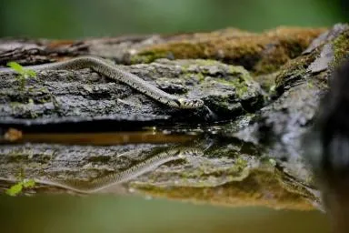 Espèce principalement diurne, la Couleuvre helvétique se déplace au sol ou en chasse dans l’eau.