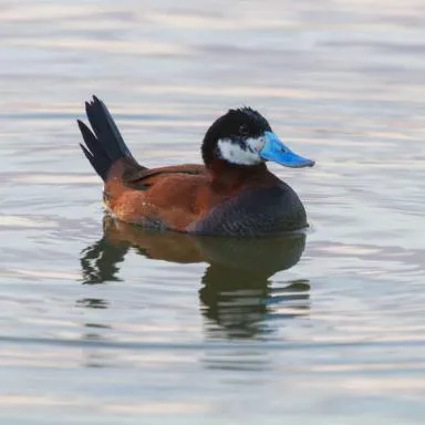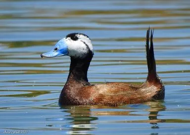 L'Érismature à tête blanche est une espèce menacée de canard plongeur, reconnaissable également à son bec renflé à la base, qui vire au bleu chez les mâles en période de reproduction. Habituée des lacs, elle est considérée comme espèce nicheuse disparue en France.