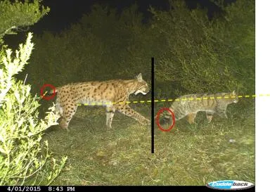 des jeunes lynx, dans des conditions d’observation difficiles avec le chat sauvage (Felis silvestris), voire la genette (Genetta genetta) et certaines races de chats domestiques (Bengal, Savannah).