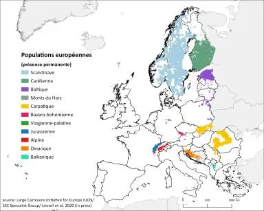 L’aire de présence est actuellement estimée à plus de 800 000 km² avec une dizaine de populations réparties sur 23 pays européens, entre la Scandinavie, le long des massifs montagneux boisés d’Europe centrale et jusqu’au sud-est dans les Balkans. A l’exception de la population des Balkans qui ne compterait maintenant que 20 à 40 individus, les populations autochtones (scandinave, carélienne, baltique, carpatique) ont connu une expansion au cours des dernières décennies et représentent aujourd’hui les noyaux les plus importantes. Les populations issues de réintroductions établies en Europe centrale et occidentale sont généralement de petite taille et restent très fragmentées.