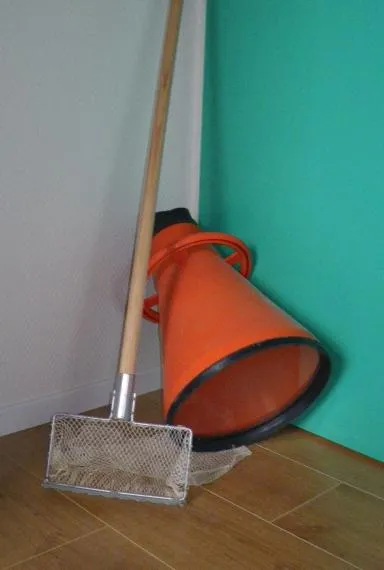 Aquascope (ou bathyscope) et tellinier, râteau servant à ramasser les tellines (Florent Lamand, OFB)