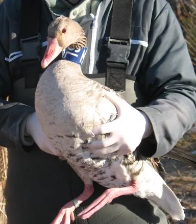 - rose chez la sous-espèce orientale Anser anser rubirostris.