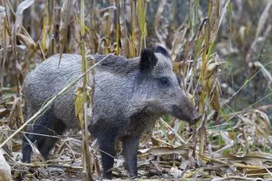 Les marcassins revêtent une livrée rayée dans le sens de la longueur de couleur beige et marron dans les 5 à 6 premiers mois de vie. Progressivement, le pelage devient plus roux puis évolue du gris au noir dans la dernière partie de la phase juvénile (10-12 mois). Le pelage est gris-noir chez le subadulte et l’adulte, avec des poils courts en été d’où une coloration plus grisée et des poils long en hiver, ton plus noir. Les poils sont plus longs sur la ligne dorsale formant une sorte de crinière.