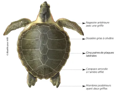 Schéma explicatif de la morphologie de la Tortue de Kemp (Bluelife, OFB)