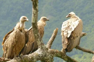 Le Vautour fauve est un grand rapace planeur d'environ 2,50 m d'envergure, il utilise les courants thermiques pour parcourir jusqu'à plusieurs centaines de kilomètres par jour. Ce charognard nécrophage nettoie les carcasses qu'il trouve. À la fois très grégaire et monogame, les coules se rassemblent en colonies.