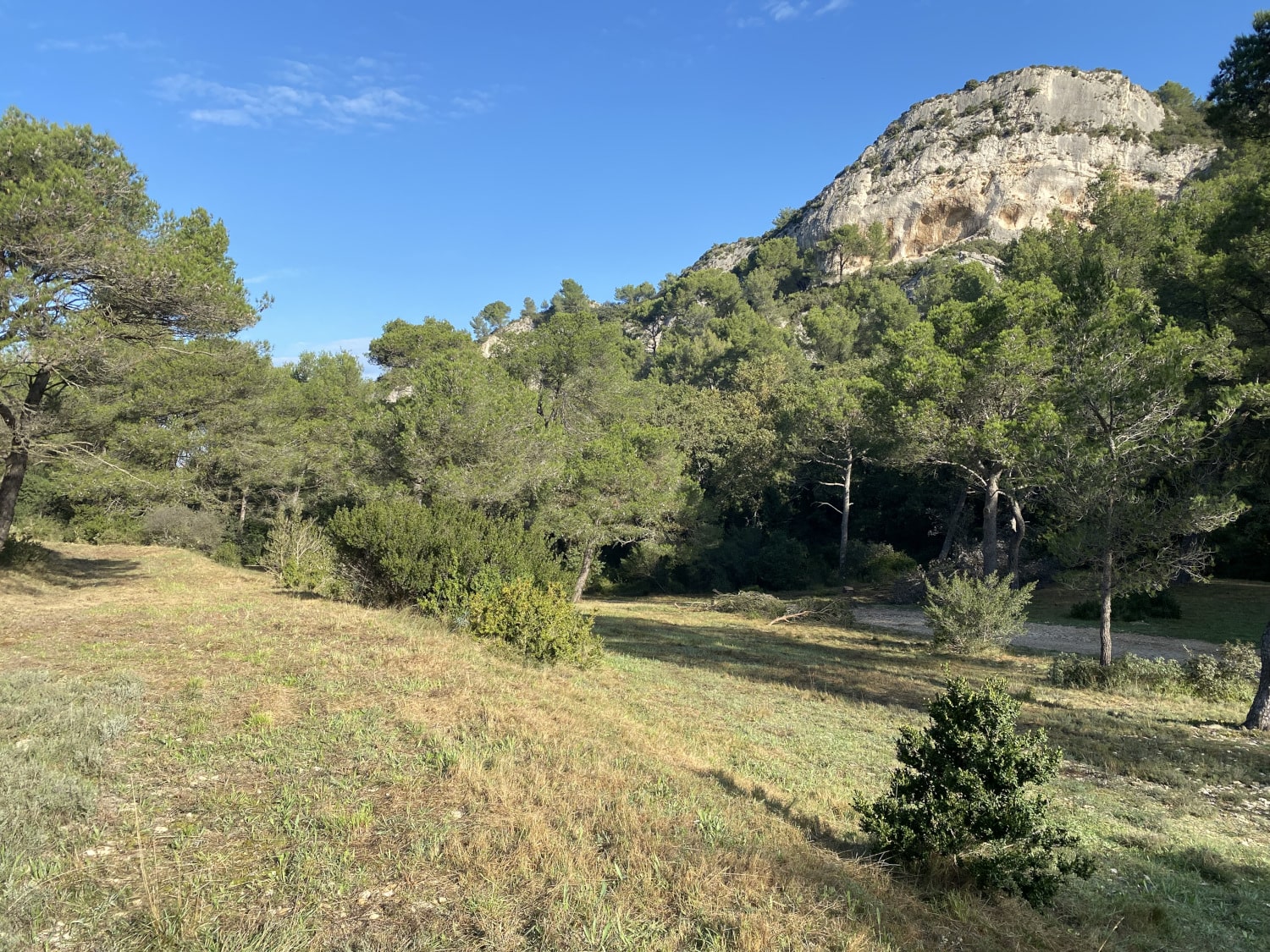 Bande débroussaillée de sécurité autour d'une piste DFCI dans les Alpilles (Marine Gonthier, OFB)