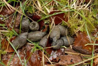 • forme en chapelet « emboîté » caractéristique, semblable aux excréments de chat sauvage mais plus volumineux (différenciation difficile entre les 2 espèces).
