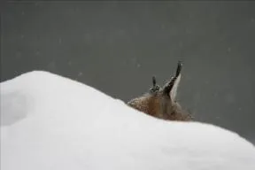 Seuls ses pinceaux auriculaires trahissent ce lyx derrière un monticule de neige (A. Laurent)